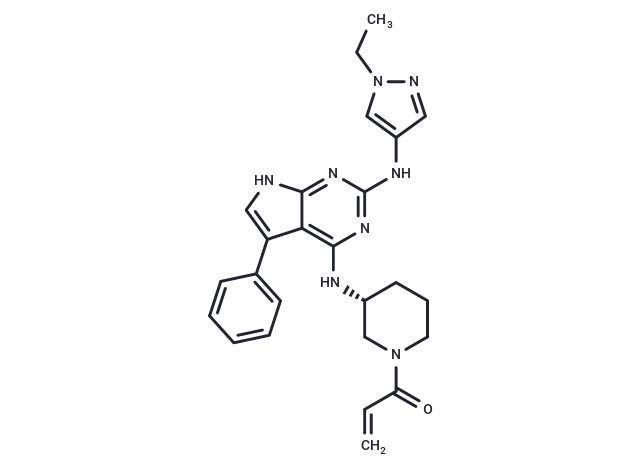 Bruton's tyrosine kinase (BTK) belongs to the Tec kinases family of tyrosine protein kinases. It is a crucial terminal kinase in the B cell receptor (BCR) signaling pathway, and essential for the development and activation of B cells. Aberrant activation of B cells is found to play a central role in the pathogenesis of B-cell lymphomas and autoimmune diseases. BTK is involved in multiple signaling pathways,and plays an important role in the B-cell receptor (BCR) signal pathway, including the PI3K, MAPK and NF-κB pathways. After BCR is first activated by phosphorylation, phosphorylated BCR recruits spleen tyrosine kinase (SYK) to the membrane, where SYK is phosphorylated and subsequently phosphorylates BTK. Activated BTK can phosphorylate PLCγ2 in Y753 and Y759, which is critical for lipase activity. BTK may be a potential target for therapy of hematological malignancies and autoimmune diseases.