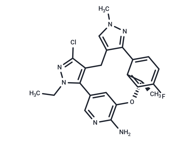 SMILESC(C)N1C2=C(CC=3C(C=4C([C@@H](C)OC=5C=C2C=NC5N)=CC(F)=CC4)=NN(C)C3)C(Cl)=N1