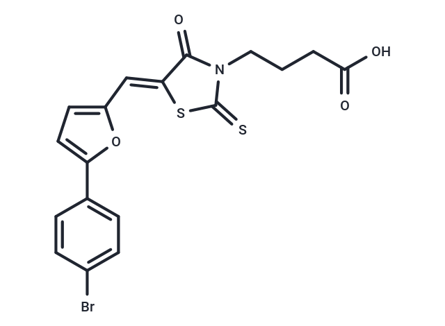 SMILESC(\C=1OC(=CC1)C2=CC=C(Br)C=C2)=C\3/C(=O)N(CCCC(O)=O)C(=S)S3