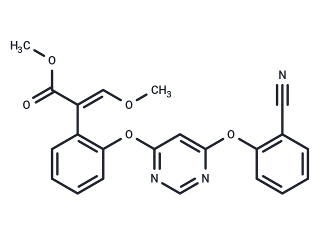 DescriptionAzoxystrobin is a broad-spectrum β-methoxyacrylate fungicide. Azoxystrobin inhibits mitochondrial respiration by binding to the Qo site of the cytochrome bc1 complex and inhibiting electron transfer. Azoxystrobin induces the production of reactive oxygen species (ROS) and induces cell apoptosis.