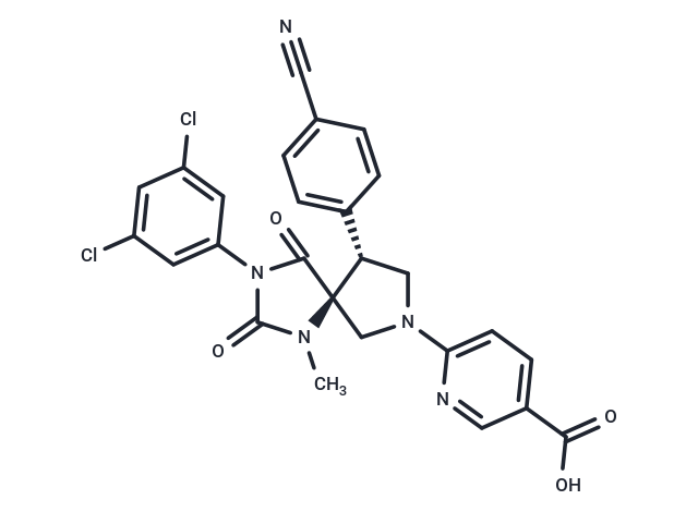 SMILESO=C1[C@@]2([C@@H](CN(C2)C3=CC=C(C(O)=O)C=N3)C4=CC=C(C#N)C=C4)N(C)C(=O)N1C5=CC(Cl)=CC(Cl)=C5