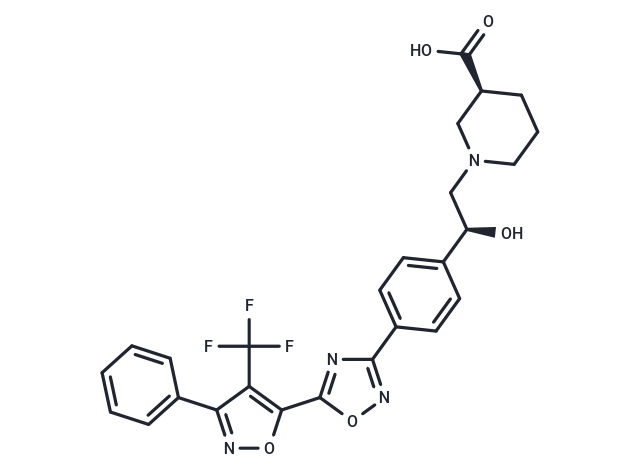 SMILESC(F)(F)(F)C1=C(ON=C1C2=CC=CC=C2)C3=NC(=NO3)C4=CC=C([C@@H](CN5C[C@@H](C(O)=O)CCC5)O)C=C4