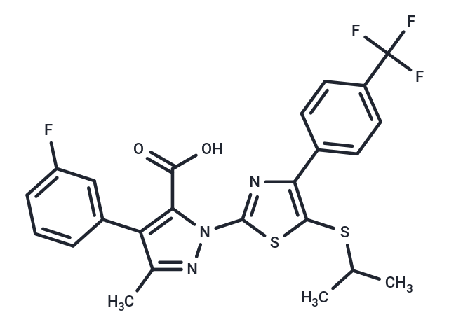SMILESO=C(O)C1=C(C=2C=CC=C(F)C2)C(=NN1C3=NC(=C(S3)SC(C)C)C=4C=CC(=CC4)C(F)(F)F)C