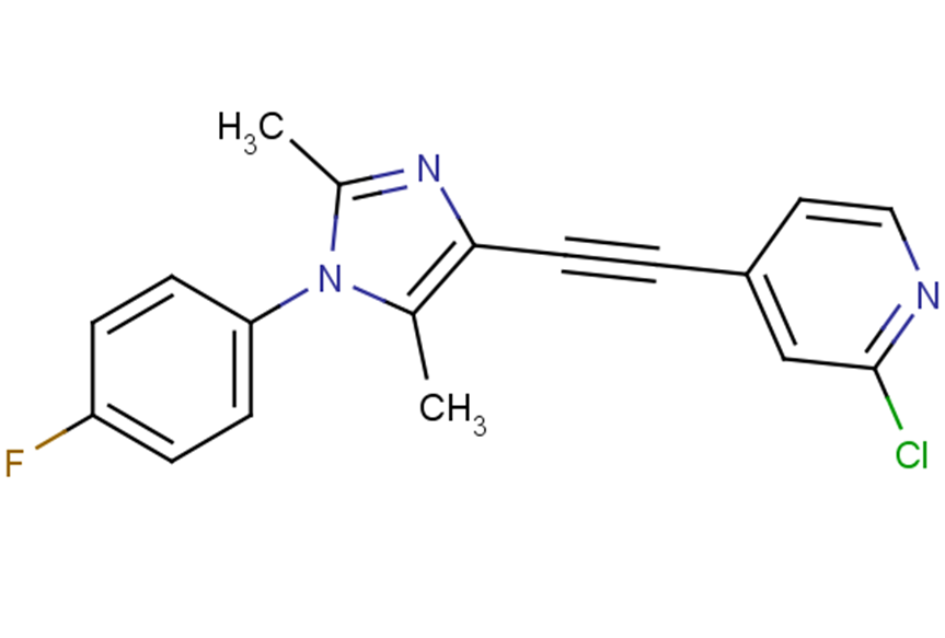 SMILESCC1=C(C#CC2=CC(Cl)=NC=C2)N=C(C)N1C3=CC=C(F)C=C3