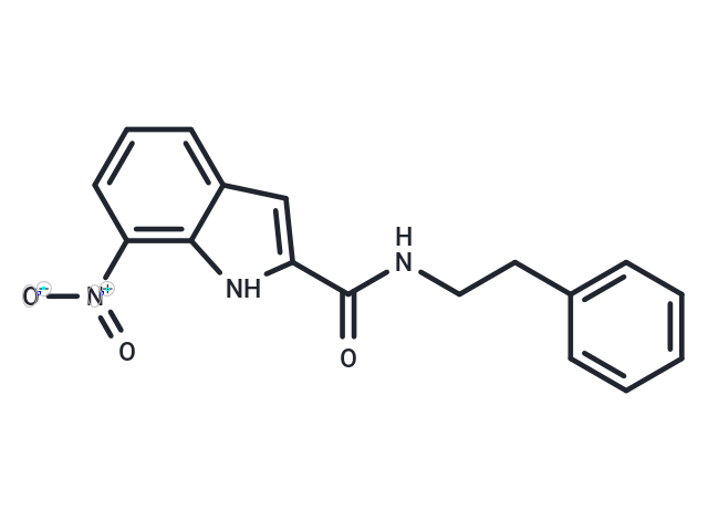 SMILES[O-][N+](=O)c1cccc2cc([nH]c12)C(=O)NCCc1ccccc1