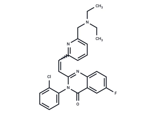 SMILESCCN(CC)Cc1cccc(C=Cc2nc3ccc(F)cc3c(=O)n2-c2ccccc2Cl)n1