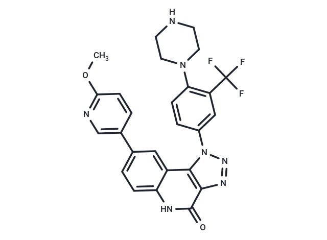 SMILESO=C1C2=C(C=3C(N1)=CC=C(C3)C=4C=CC(OC)=NC4)N(N=N2)C5=CC(C(F)(F)F)=C(C=C5)N6CCNCC6