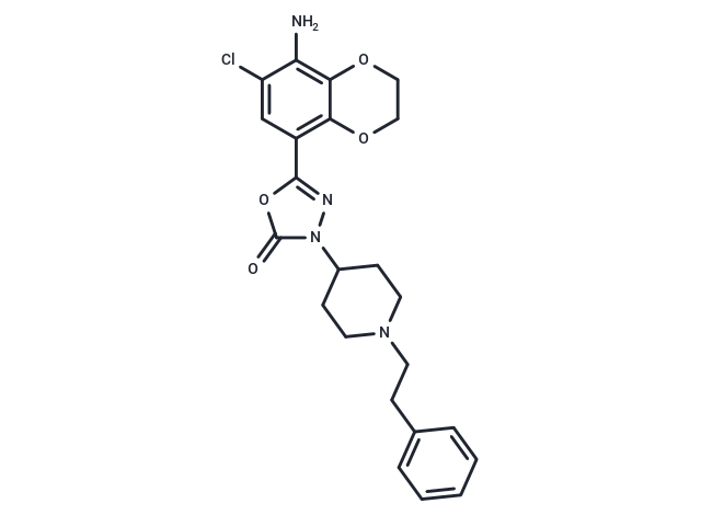 SMILESO=C1OC(=NN1C2CCN(CCC=3C=CC=CC3)CC2)C=4C=C(Cl)C(N)=C5OCCOC54