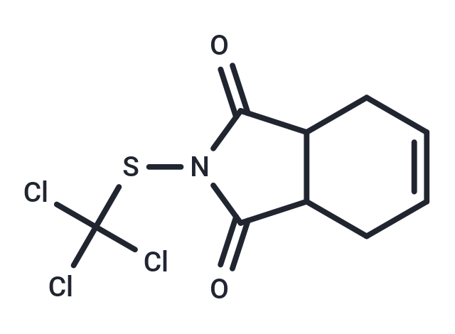 Captan (Aacaptan) is a phthalimide fungicide that disrupts oocyte development.Captan is cytotoxic to mammalian cells and enhances the cytotoxicity of hydrogen peroxide.