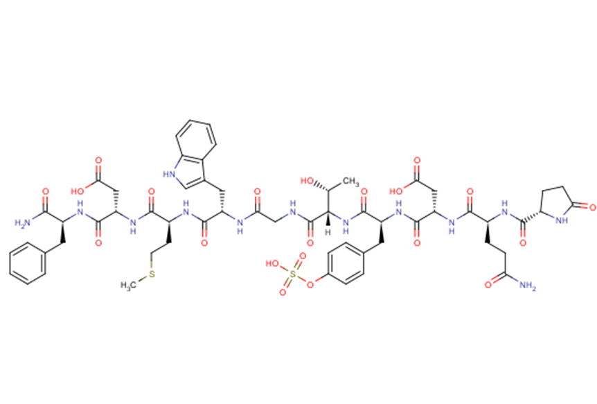 SMILESNC(=O)[C@H](Cc1ccccc1)NC(=O)[C@H](CC(=O)O)NC(=O)[C@H](CCSC)NC(=O)[C@H](Cc3cnc2ccccc23)NC(=O)CNC(=O)[C@@H](NC(=O)[C@H](Cc4ccc(OS(=O)(=O)O)cc4)NC(=O)[C@H](CC(=O)O)NC(=O)[C@@H](NC(=O)[C@@H]5CCC(=O)N5)CCC(N)=O)[C@@H](C)O