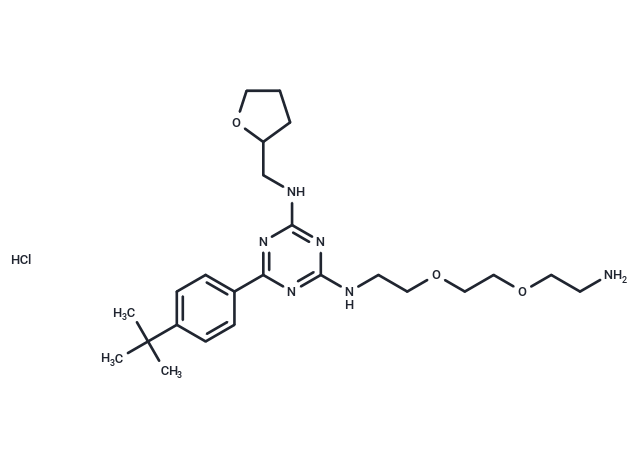 SMILESCl.N=1C(=NC(=NC1NCC2OCCC2)C=3C=CC(=CC3)C(C)(C)C)NCCOCCOCCN