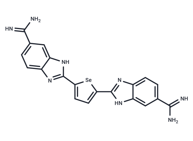 SMILESC(=N)(N)C=1C=C2NC(=NC2=CC1)C=3[Se]C(=CC3)C=4NC=5C(N4)=CC=C(C(=N)N)C5