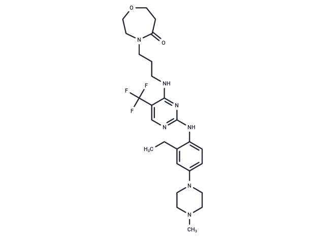 SMILESO=C1N(CCOCC1)CCCNC2=NC(=NC=C2C(F)(F)F)NC3=CC=C(C=C3CC)N4CCN(C)CC4