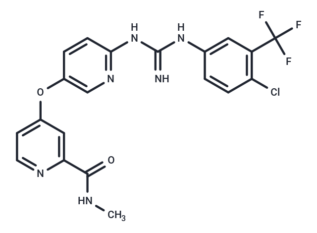 SMILESO(C=1C=C(C(NC)=O)N=CC1)C=2C=CC(NC(NC3=CC(C(F)(F)F)=C(Cl)C=C3)=N)=NC2