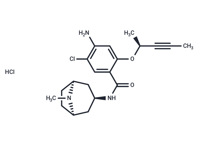 SMILESCl.CC#C[C@H](C)Oc1cc(N)c(Cl)cc1C(=O)N[C@@H]1C[C@@H]2CC[C@H](C1)N2C