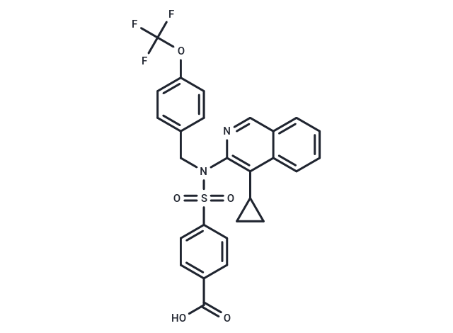 SMILESO=C(O)C1=CC=C(C=C1)S(=O)(=O)N(C=2N=CC3=CC=CC=C3C2C4CC4)CC5=CC=C(OC(F)(F)F)C=C5