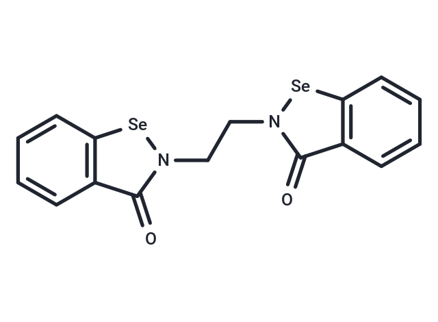 Brief DescriptionEthaselen (BBSKE) is an orally active and selective thioredoxin reductase 1 (TrxR) inhibitor with anticancer activity that directly inhibits TrxR1 activity and is commonly used in combination with oxaliplatin to inhibit tumor growth.