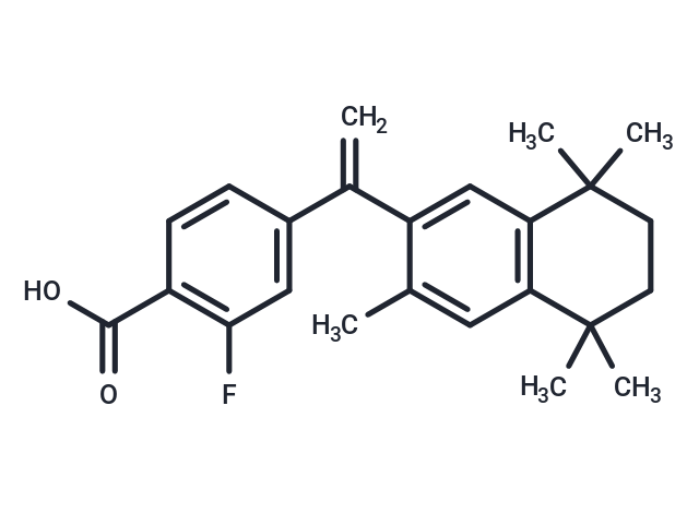 DescriptionFluorobexarotene (compound 20) is a potent retinoid-X-receptor (RXR) agonist, with a Ki value of 12 nM and an EC50 value of 43 nM for RXRα receptor. Fluorobexarotene possesses an apparent RXR binding affinity that is 75% greater than Bexarotene.