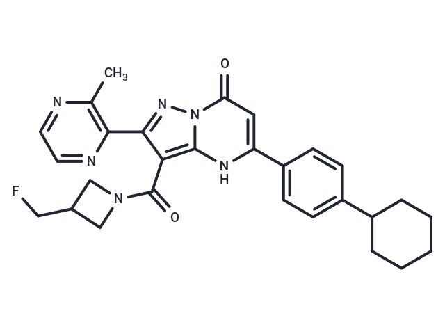 SMILESO=C1C=C(NC2=C(C(=O)N3CC(CF)C3)C(=NN12)C=4N=CC=NC4C)C=5C=CC(=CC5)C6CCCCC6
