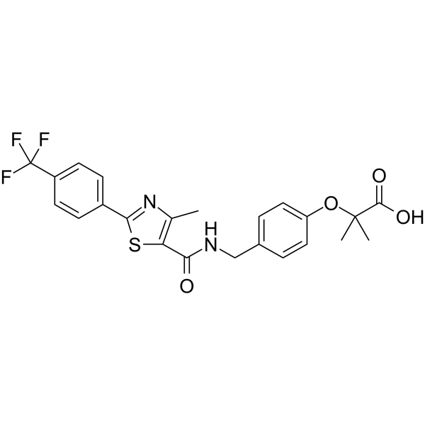 SMILESCC(C)(C(O)=O)Oc1ccc(CNC(c2c(C)nc(-c3ccc(C(F)(F)F)cc3)s2)=O)cc1
