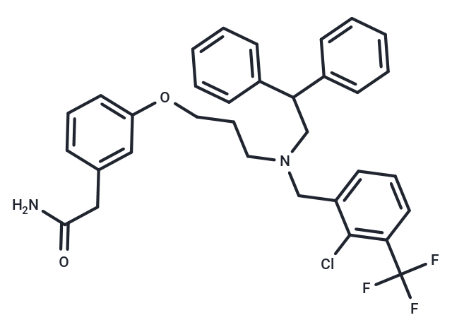 SMILESO=C(N)CC=1C=CC=C(OCCCN(CC2=CC=CC(=C2Cl)C(F)(F)F)CC(C=3C=CC=CC3)C=4C=CC=CC4)C1