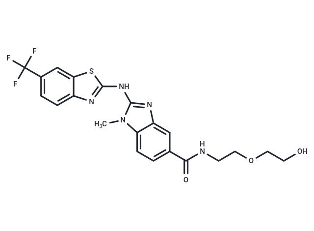 SMILESCN1C=2C(N=C1NC=3SC=4C(N3)=CC=C(C(F)(F)F)C4)=CC(C(NCCOCCO)=O)=CC2