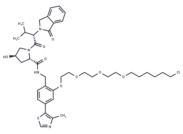 SMILES[C@@H](C(=O)N1[C@H](C(NCC2=C(OCCOCCOCCOCCCCCCCl)C=C(C=C2)C3=C(C)N=CS3)=O)C[C@@H](O)C1)(C(C)C)N4C(=O)C=5C(C4)=CC=CC5
