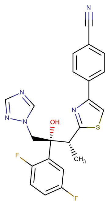 SMILESN#CC1=CC=C(C2=CSC([C@@H]([C@@](O)(C3=CC(F)=CC=C3F)CN4N=CN=C4)C)=N2)C=C1