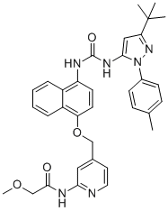 Chemical NameN-(4-((4-(3-(3-tert-Butyl-1-p-tolyl-1H-pyrazol-5-yl)ureido)-naphthalen-1-yloxy)methyl)yridin-2-yl)-2-methoxyacetamide