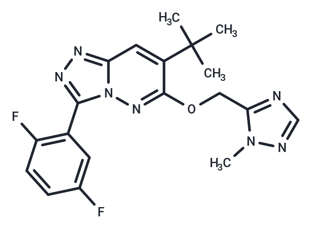 SMILESFC=1C=CC(F)=C(C1)C2=NN=C3C=C(C(=NN32)OCC4=NC=NN4C)C(C)(C)C