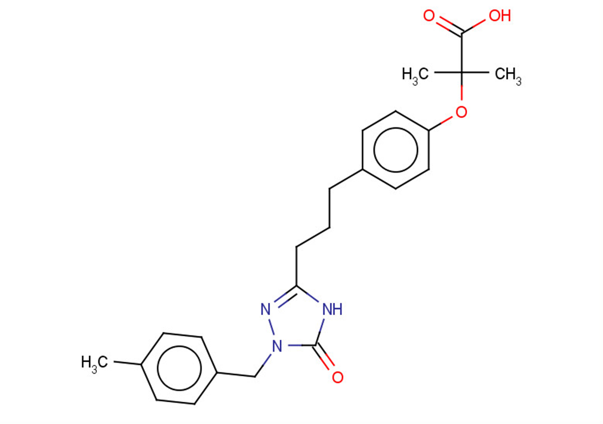 SMILESCC(C)(C(O)=O)Oc1ccc(CCCC(N2)=NN(Cc3ccc(C)cc3)C2=O)cc1