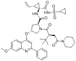Chemical Name2-Pyrrolidinecarboxamide,N-[(1R,2S)-1-[[(cyclopropylsulfonyl)amino]carbonyl]-2-ethenylcyclopropyl]-1-[(2S)-3,3-dimethyl-1-oxo-2-[2-oxo-2-(1-piperidinyl)ethyl]butyl]-4-[(7-methoxy-2-phenyl-4-quinolinyl)oxy]-, (2S,4R)-