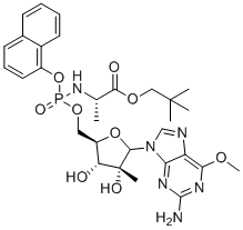 Chemical NameNeopentyl ((((2R,3R,4R)-5-(2-amino-6-methoxy-9H-purin-9-yl)-3,4-dihydroxy-4-methyltetrahydrofuran-2-yl)methoxy)(naphthalen-1-yloxy)phosphoryl)-L-alaninate