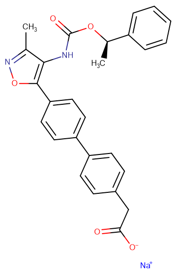 SMILESCC1=NOC(=C1NC(=O)O[C@H](C)C2=CC=CC=C2)C3=CC=C(C=C3)C4=CC=C(C=C4)CC(=O)[O-].[Na+]