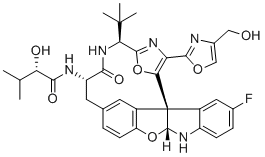 SMILESCC(C)C(C(=O)NC1CC2=CC3=C(C=C2)OC4C3(C5=C(N4)C=CC(=C5)F)C6=C(N=C(O6)C(NC1=O)C(C)(C)C)C7=NC(=CO7)CO)O