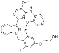 Chemical Name2-[3,5-Difluoro-4-[[3-[5-methoxy-4-[(3-methoxy-4-pyridinyl)amino]-2-pyrimidinyl]-1H-indazol-1-yl]methyl]phenoxy]ethanol