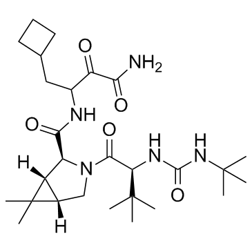 Chemical Name3-Azabicyclo[3.1.0]hexane-2-carboxamide, N-[3-amino-1-(cyclobutylmethyl)-2,3-dioxopropyl]-3-[(2S)-2-[[[(1,1-dimethylethyl)amino]carbonyl]amino]-3,3-dimethyl-1-oxobutyl]-6,6-dimethyl-, (1R,2S,5S)-