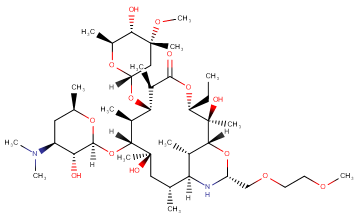 SMILESCC[C@@H]1[C@](O)(C)[C@@]2([H])[C@@H](C)[C@](N[C@@H](COCCOC)O2)([H])[C@H](C)C[C@@](C)(O)[C@@](O[C@]3([H])O[C@H](C)C[C@H](N(C)C)[C@H]3O)([H])[C@@H](C)[C@H](O[C@]4([H])O[C@@H](C)[C@H](O)[C@@](OC)(C)C4)[C@@H](C)C(O1)=O