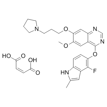 Chemical NameQuinazoline, 4-[(4-fluoro-2-methyl-1H-indol-5-yl)oxy]-6-methoxy-7-[3-(1-pyrrolidinyl)propoxy]-, (2Z)-2-butenedioate (1:1)