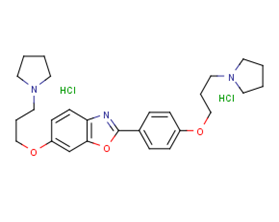 SMILESc1(c2ccc(OCCCN3CCCC3)cc2)nc2ccc(OCCCN3CCCC3)cc2o1.Cl.Cl