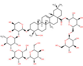 SMILESC[C@H]1[C@@H]([C@H]([C@H]([C@@H](O1)O[C@@H]1[C@H]([C@H](CO[C@H]1O[C@H]1CC[C@]2([C@H]([C@]1(C)CO)CC[C@@]1([C@@H]2CC=C2[C@]1(CC[C@@]1([C@H]2CC(CC1)(C)C)C(=O)O[C@H]1[C@@H]([C@H]([C@@H]([C@H](O1)CO[C@H]1[C@@H]([C@H]([C@@H]([C@H](O1)CO)O)O)O)O)O)O)C)C)C)O[C@@H]1[C@@H]([C@H]([C@@H]([C@H](O1)CO)O)O)O)O[C@H]1O[C@@H]([C@H]([C@@H]([C@H]1O)O)O)CO)O)O)O