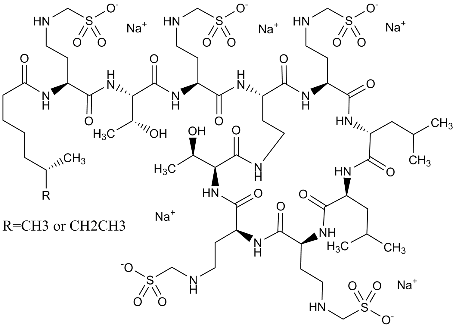 SMILESCC[C@H](C)CCCCC(=O)N[C@@H](CCNCS(=O)(=O)O)C(=O)N[C@@H]([C@@H](C)O)C(=O)N[C@@H](CCNCS(=O)(=O)O)C(=O)N[C@H]1CCNC(=O)[C@@H](NC(=O)[C@@H](NC(=O)[C@@H](NC(=O)[C@@H](NC(=O)[C@H](NC(=O)[C@@H](NC1=O)CCNCS(=O)(=O)O)CC(C)C)CC(C)C)CCN)CCNCS(=O)(=O)O)[C@@H](C)O