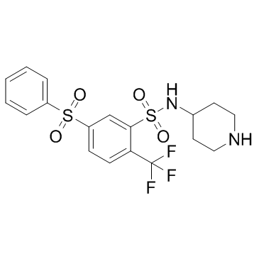 SMILESFC(F)(F)c1ccc(cc1S(=O)(=O)NC1CCNCC1)S(=O)(=O)c1ccccc1