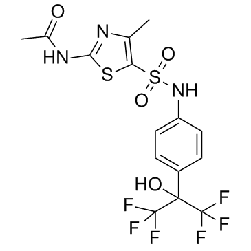 SMILESCC(=O)Nc1nc(C)c(s1)S(=O)(=O)Nc1ccc(cc1)C(O)(C(F)(F)F)C(F)(F)F