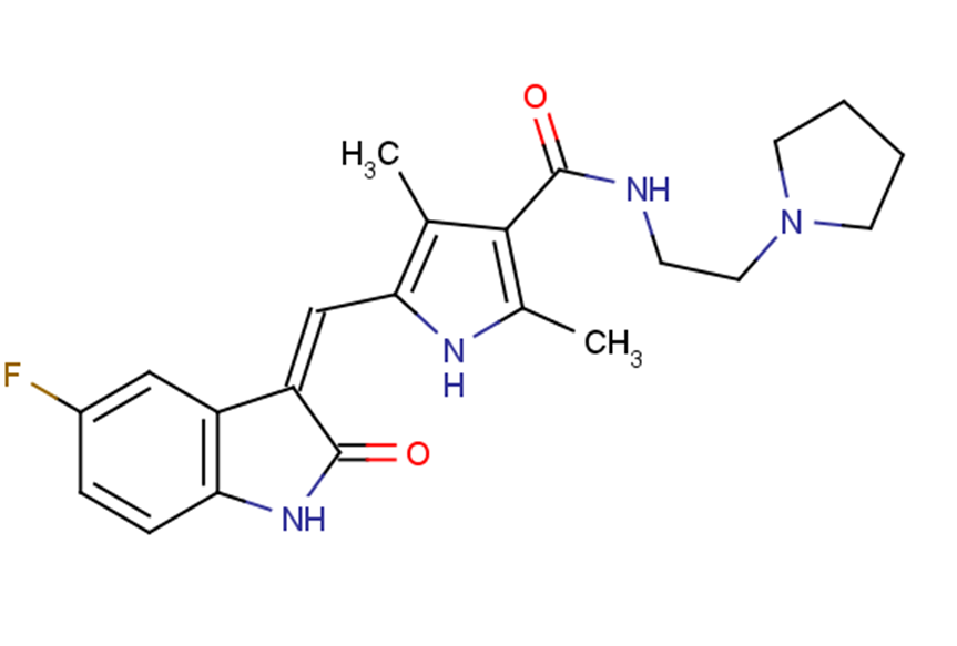 SMILESCc1[nH]c(\C=C2/C(=O)Nc3ccc(F)cc23)c(C)c1C(=O)NCCN1CCCC1