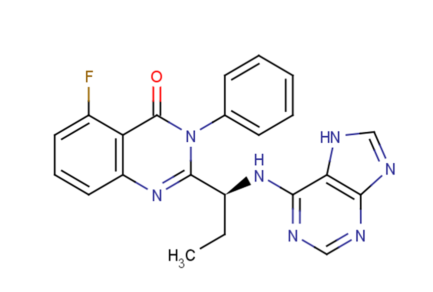 Idelalisib is a selective inhibitor of p110δ(IC50 : 2.5 nM; in cell-free assays); shown to have 40- to 300-fold greater selectivity for p110δ than p110α/β/γ, and 400- to 4000-fold more selectivity to p110δ than C2β, hVPS34, DNA-PK and mTOR.