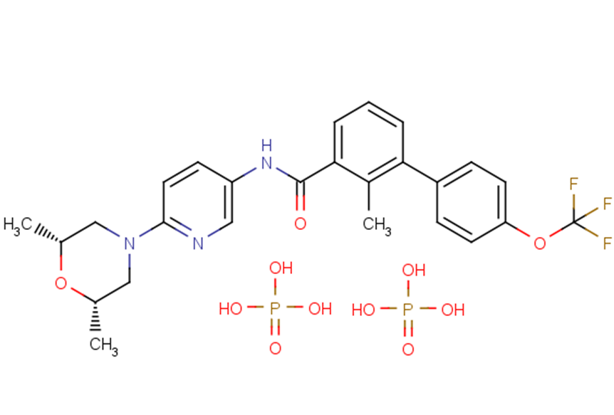 SMILESOP(O)(O)=O.OP(O)(O)=O.C[C@H]1CN(C[C@@H](C)O1)c1ccc(NC(=O)c2cccc(-c3ccc(OC(F)(F)F)cc3)c2C)cn1