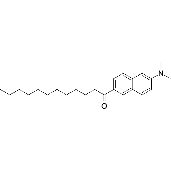 Brief DescriptionLaurdan is a membrane-permeable fluorescent probe that displays spectral sensitivity to the phospholipid phase of the cell membrane to which it is bound.