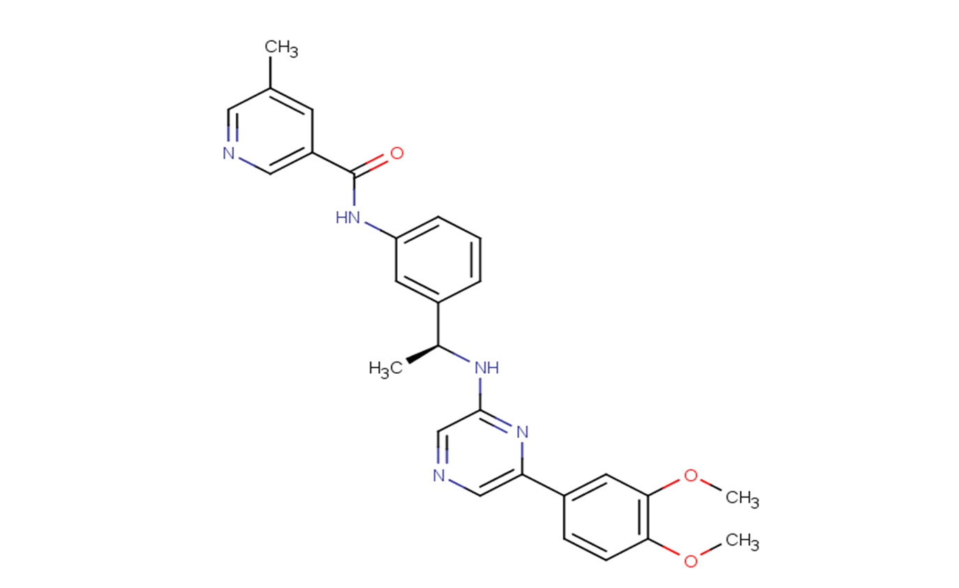 SMILESCC1=CC(=CN=C1)C(=O)NC2=CC=CC(=C2)[C@H](C)NC3=NC(=CN=C3)C4=CC(=C(C=C4)OC)OC