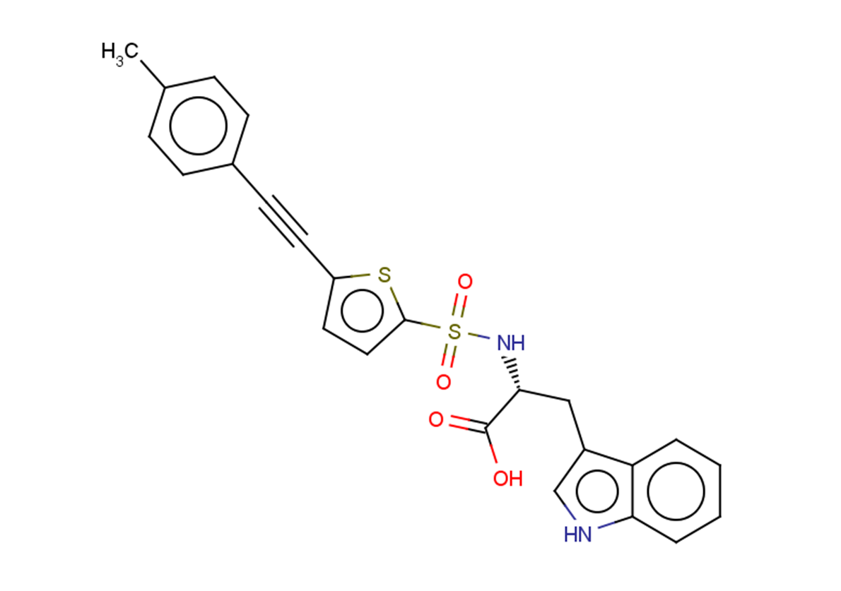 SMILESCc(cc1)ccc1C#Cc(s1)ccc1S(N[C@H](Cc1c[nH]c2c1cccc2)C(O)=O)(=O)=O